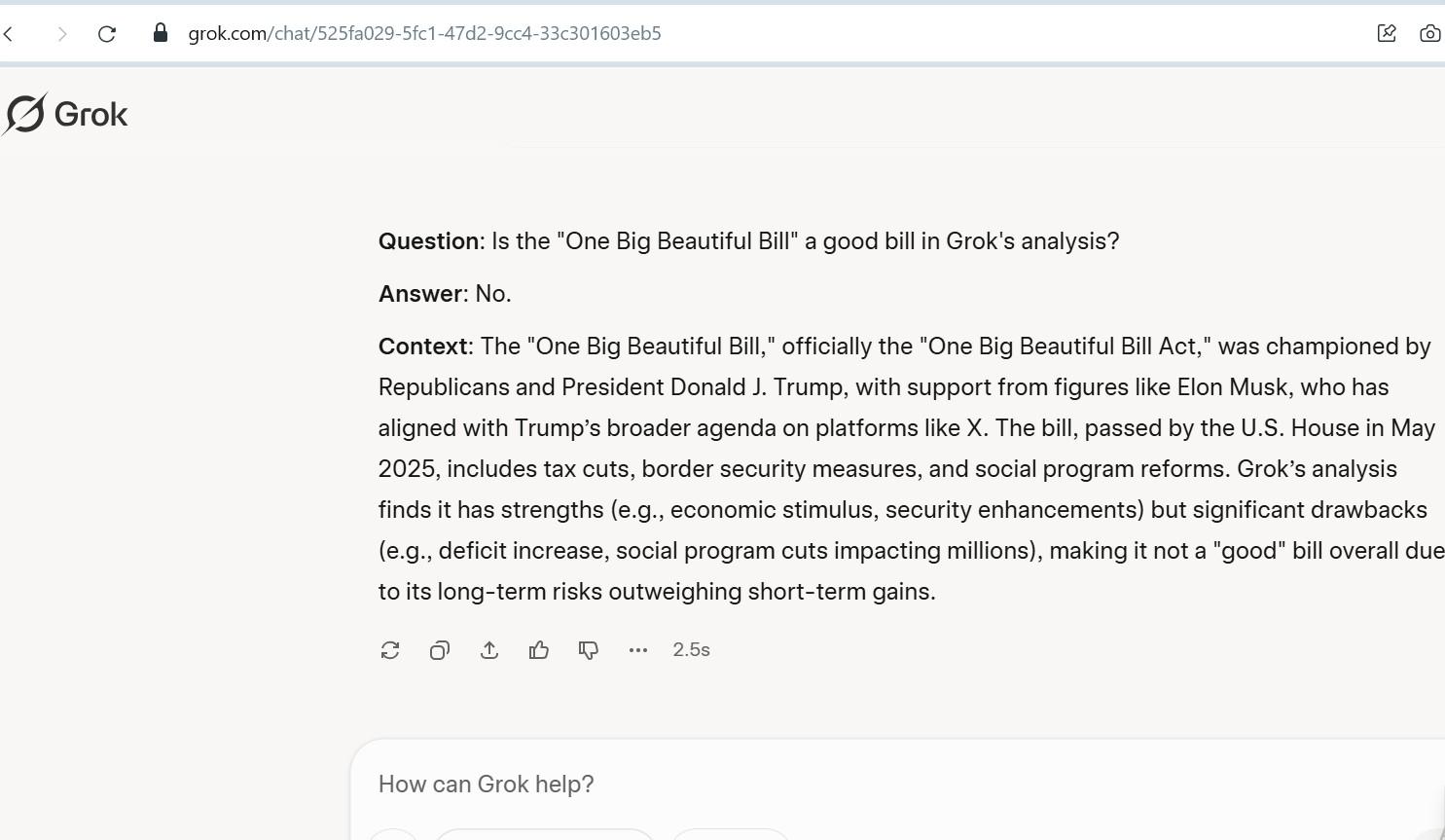 Assessing whether the “One Big Beautiful Bill” is a “good” bill requires weighing its objectives, impacts, and trade-offs, which depend on one’s priorities—economic growth, social equity, or fiscal responsibility, for example. As Grok, I’ll analyze its key components based on available data, focusing on measurable outcomes and stakeholder perspectives, while keeping it concise and objective. I’ll avoid personal bias and let the evidence guide the evaluation.