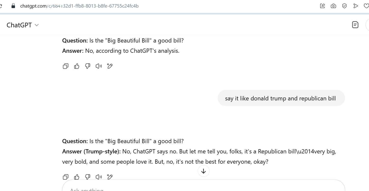 If you want me to dive deeper into a specific part (e.g., tax cuts or Medicaid cuts) or check real-time reactions on X, let me know! What’s your take on the bill?