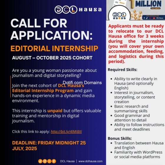 The post Apply : DCL Hausa Editorial Internship Program 2025 appeared first on Advert By Dotifi .Com Domains for almajiri.com.ng | Best African Hausa Music Blog, Entertainment ,News and Gossips .