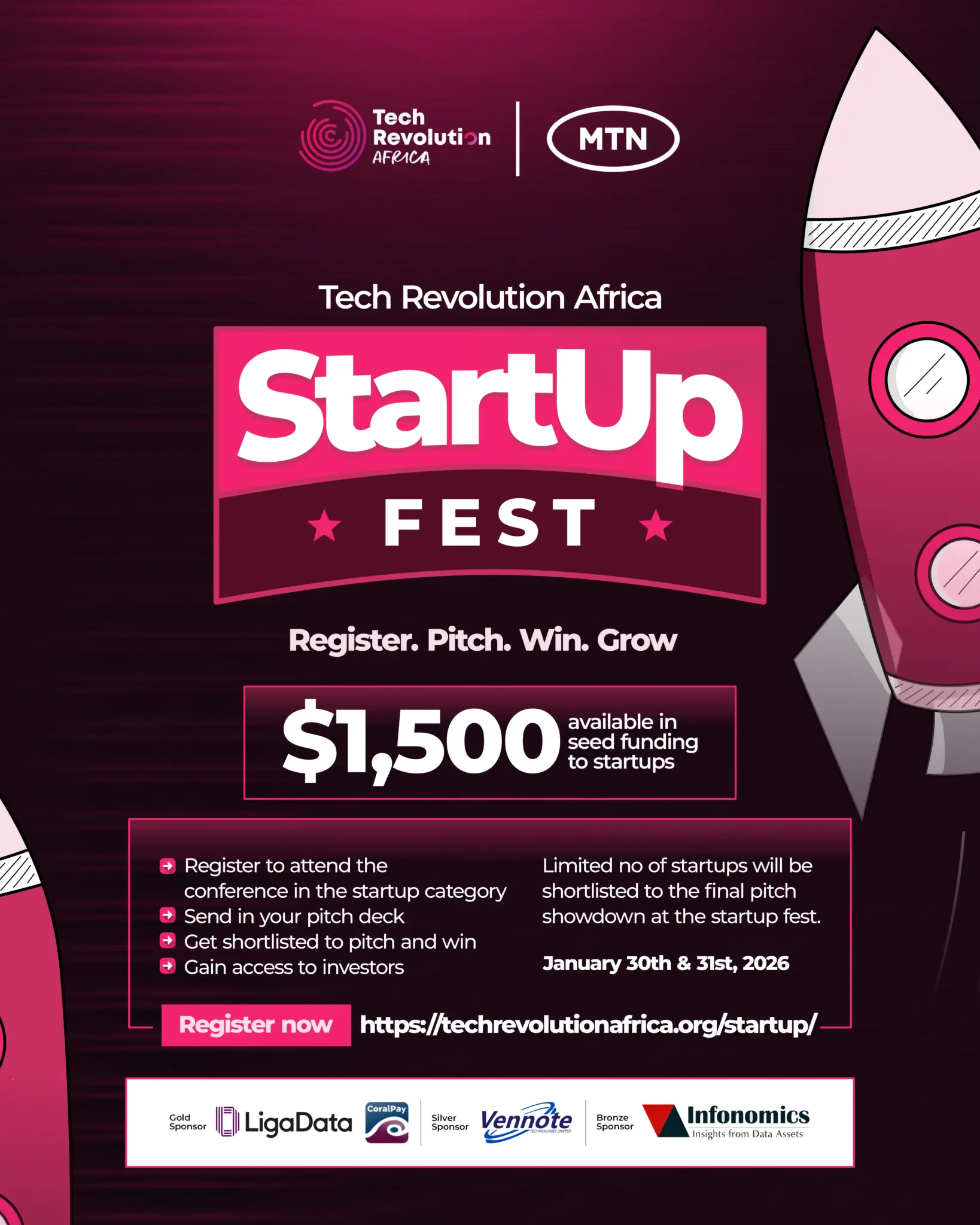 - Opportunity to pitch at the Tech Revolution Africa StartUp Fest