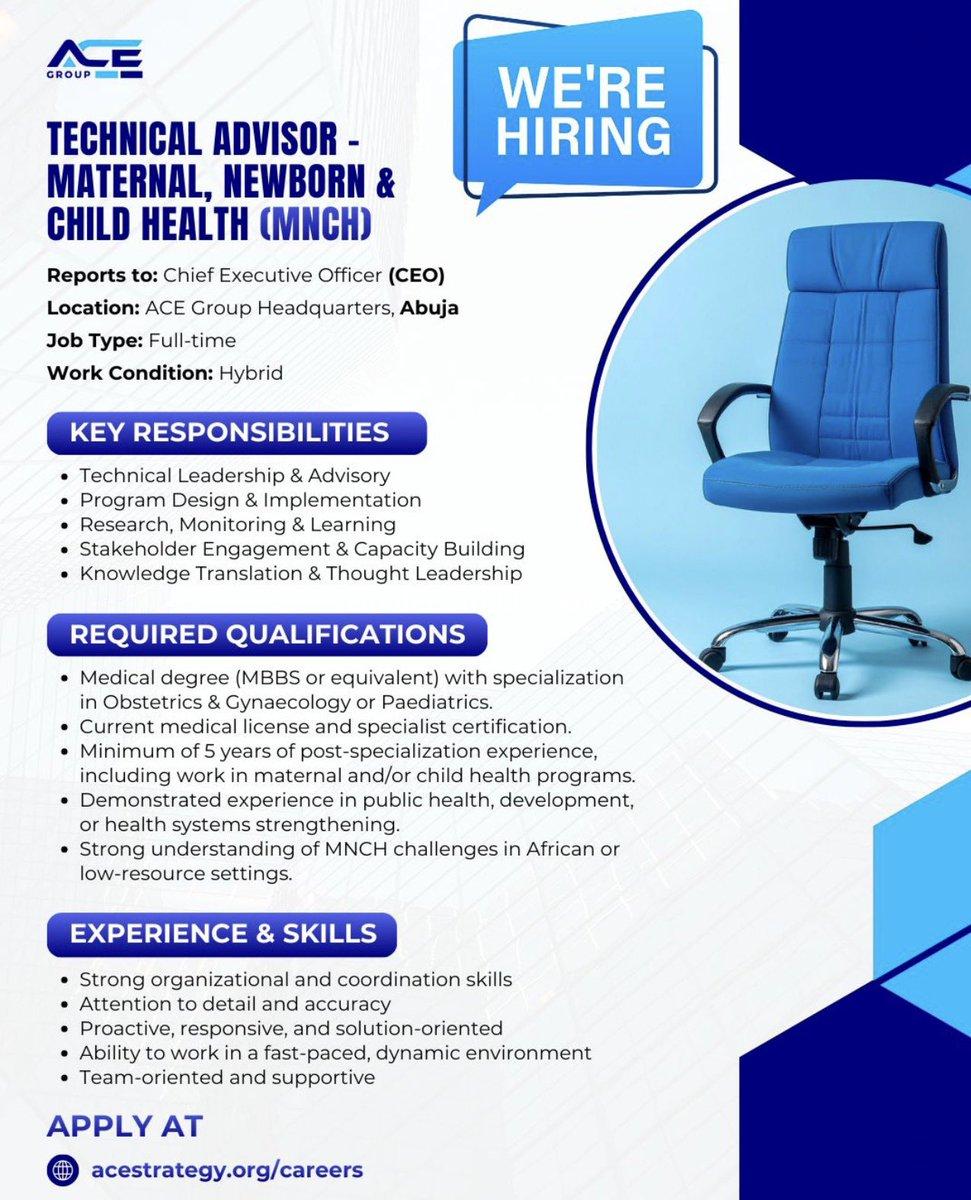 The post Technical Advisor – Maternal, Newborn, and Child Health (MNCH) at ACE Group appeared first on Advert By Dotifi .Com Domains for almajiri.com.ng | Best African Hausa Music Blog, Entertainment ,News and Gossips .