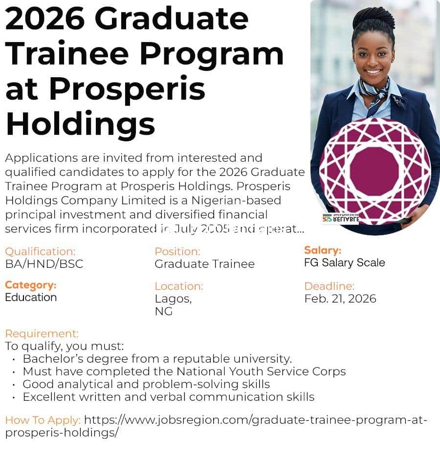 The post Prosperis Holding Company 2026 Graduate Trainee Programme appeared first on Advert By Dotifi .Com Domains for almajiri.com.ng | Best African Hausa Music Blog, Entertainment ,News and Gossips .