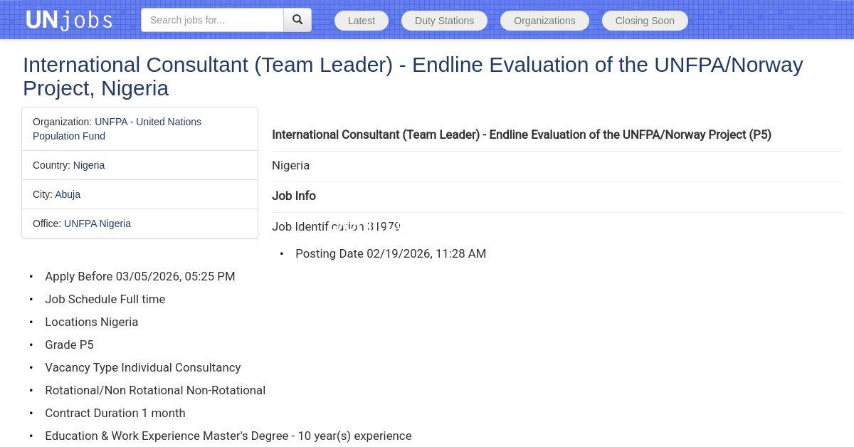 The post Consultancy -Young and Emering Evaluator (YEE) at UNFPA appeared first on Advert By Dotifi .Com Domains for almajiri.com.ng | Best African Hausa Music Blog, Entertainment ,News and Gossips .