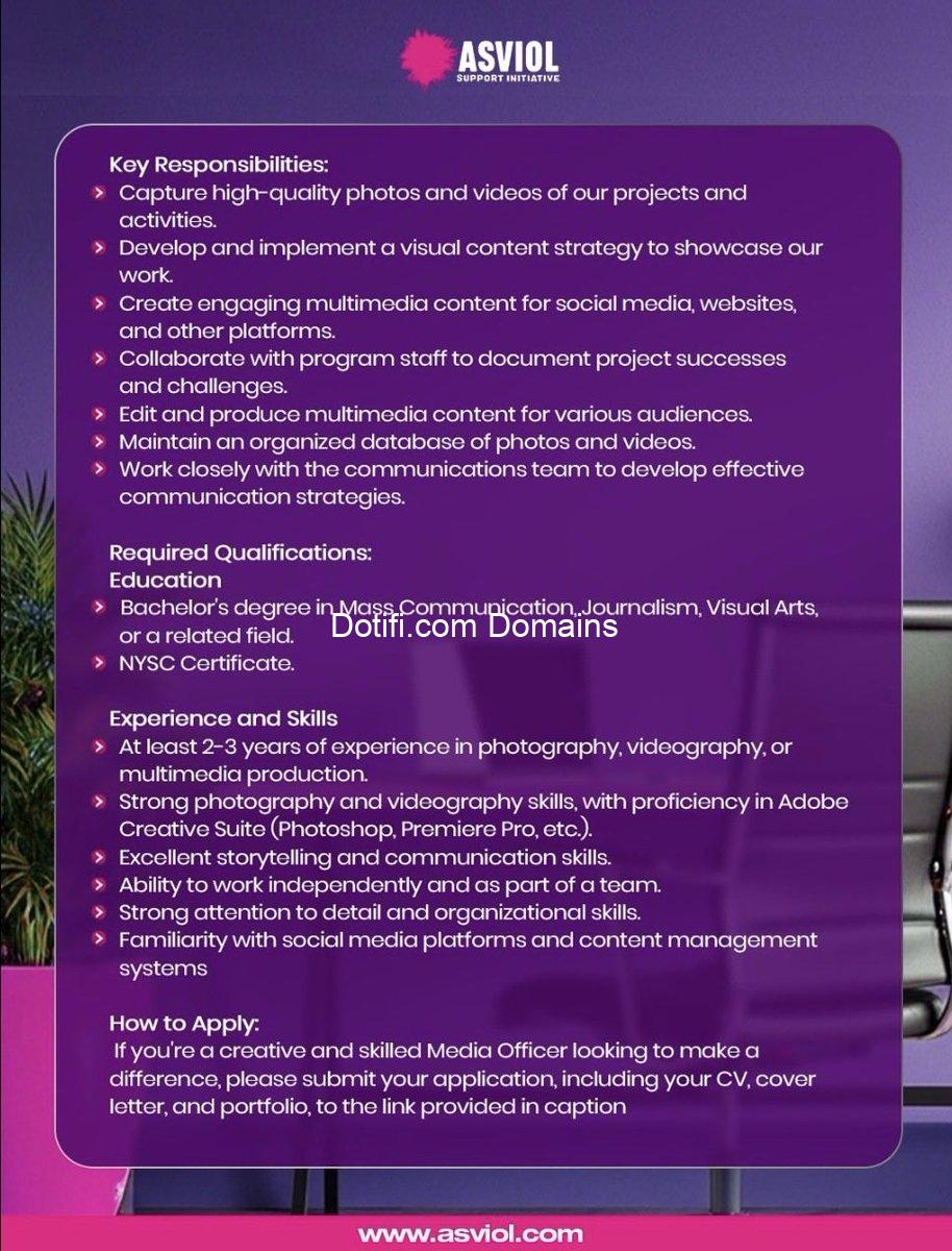 The post Procurement Officer at ASVIOL Support Initiative appeared first on Advert By Dotifi .Com Domains for almajiri.com.ng | Best African Hausa Music Blog, Entertainment ,News and Gossips .