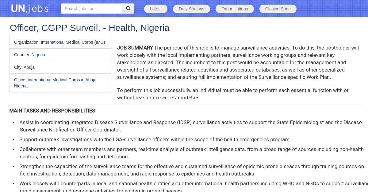The post Officer, CGPP Surveillance – Health at International Medical Corps (IMC) appeared first on Advert By Dotifi .Com Domains for almajiri.com.ng | Best African Hausa Music Blog, Entertainment ,News and Gossips .