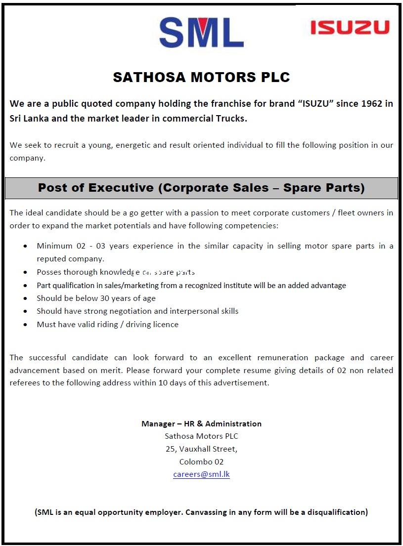 - HND / B.Sc in Marketing, Business Administration, or related discipline with 1–3 years of sales experience in the automobile (two-wheeler or three-wheeler) industry.